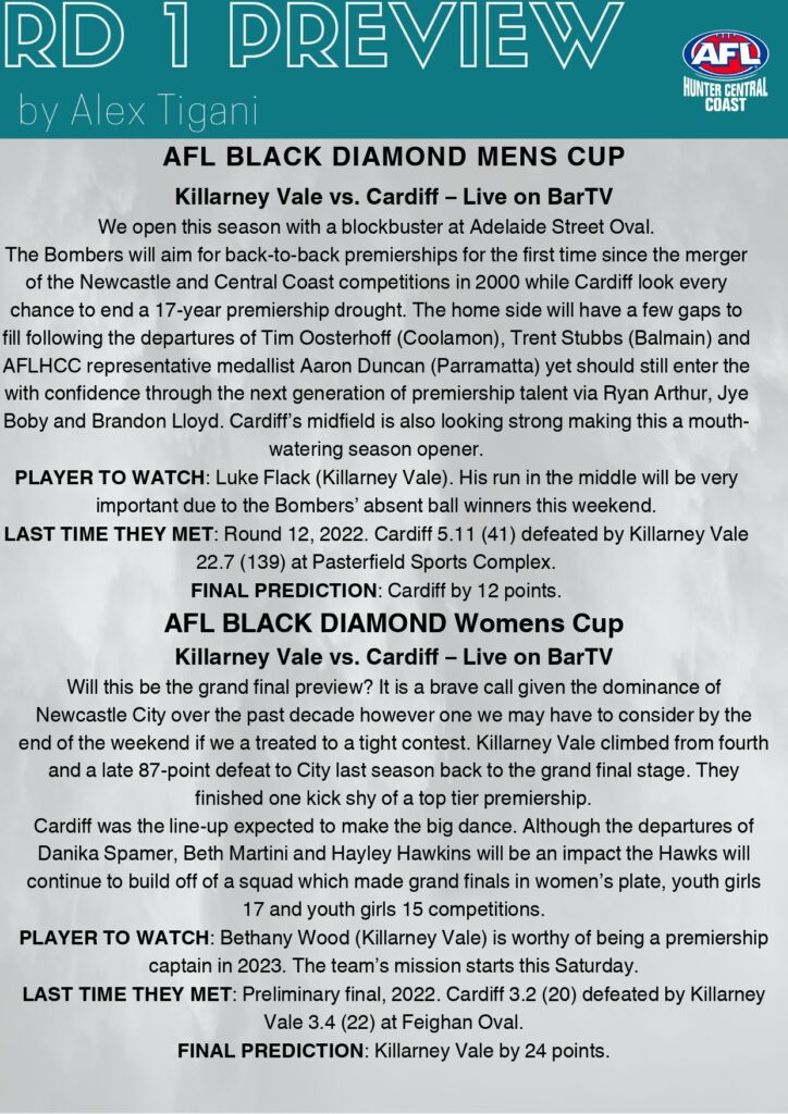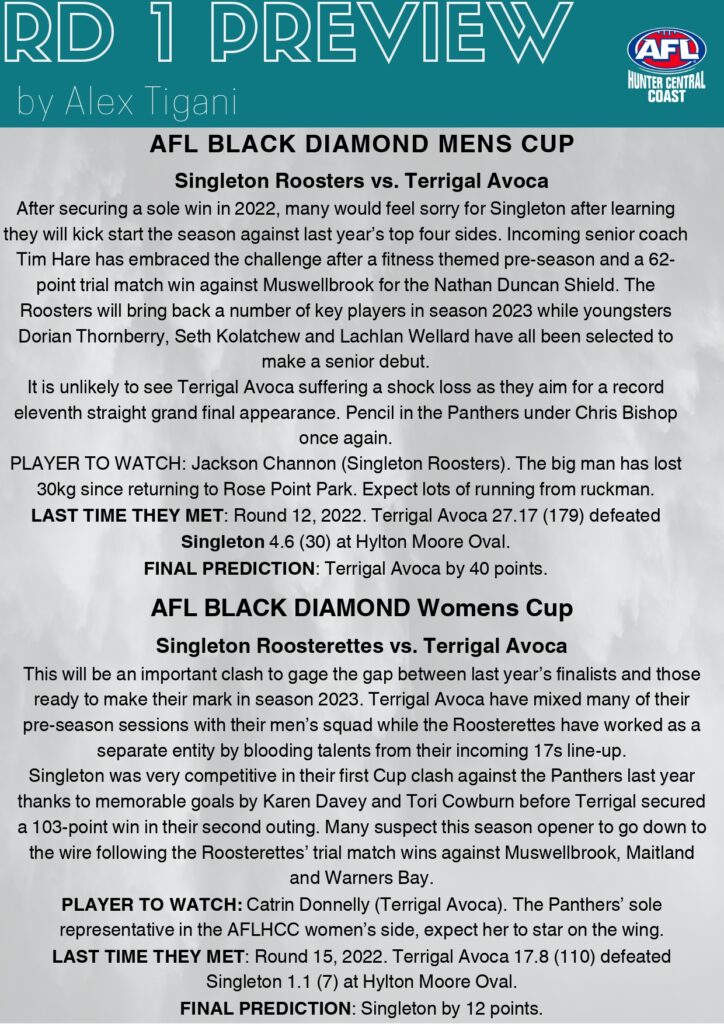 AFL Hunter Central Coast Round 1 Record